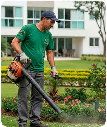 Manutenção técnica das áreas verdes, garantindo estética, organização e bem-estar nos espaços comuns.